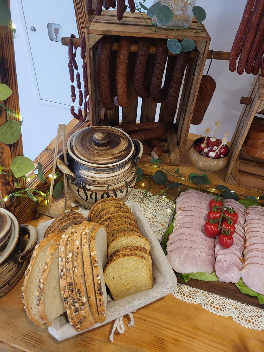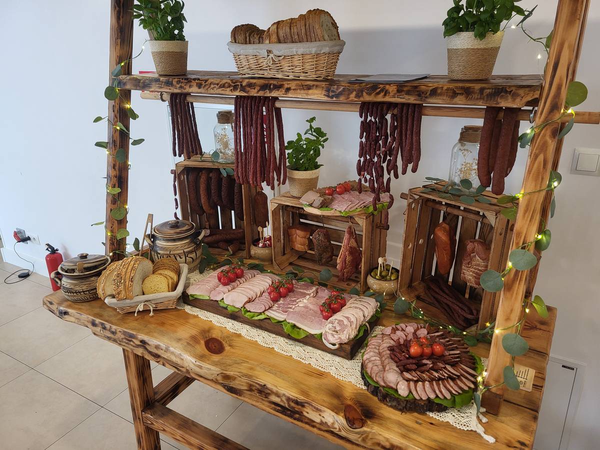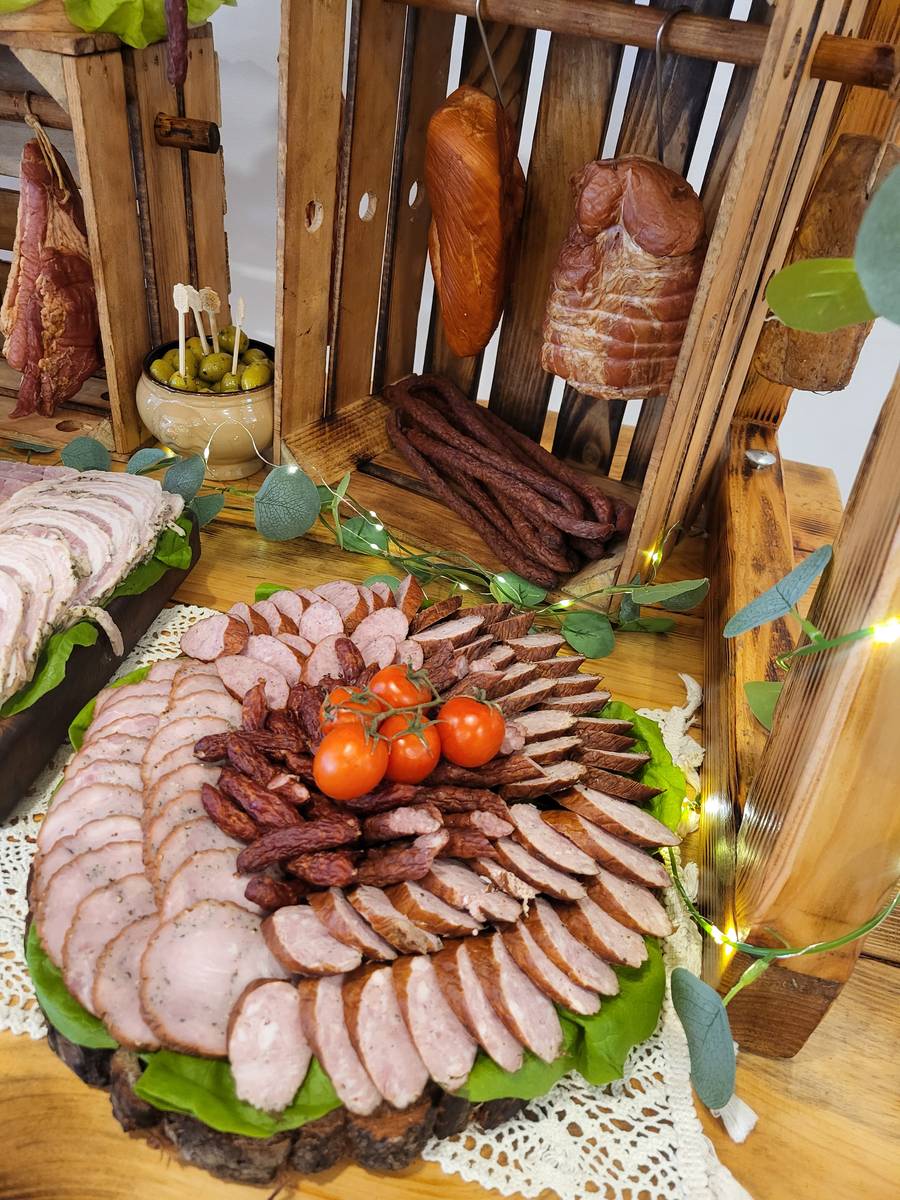 Stół wiejski od Wędzarnia Dymek na weselu Kasi i Szymona – Hotel Sleep