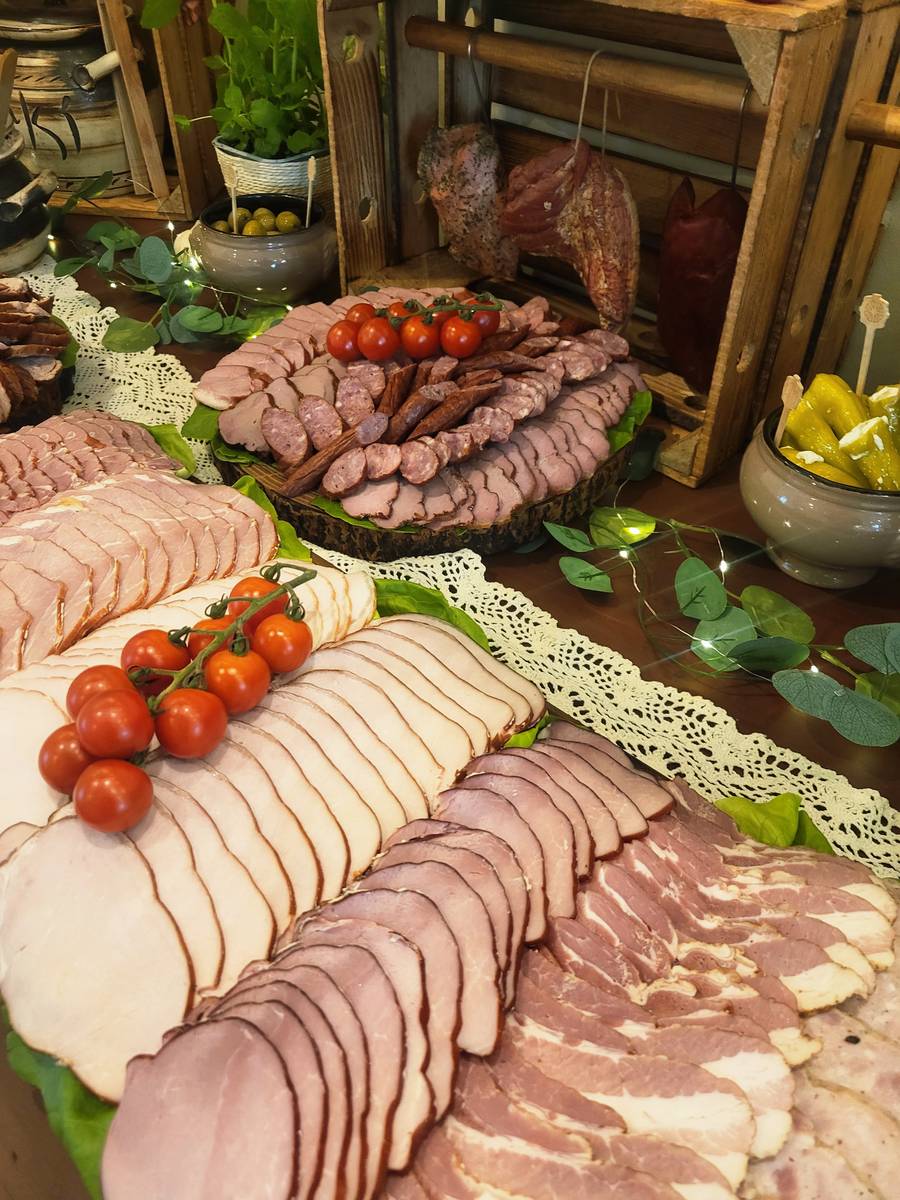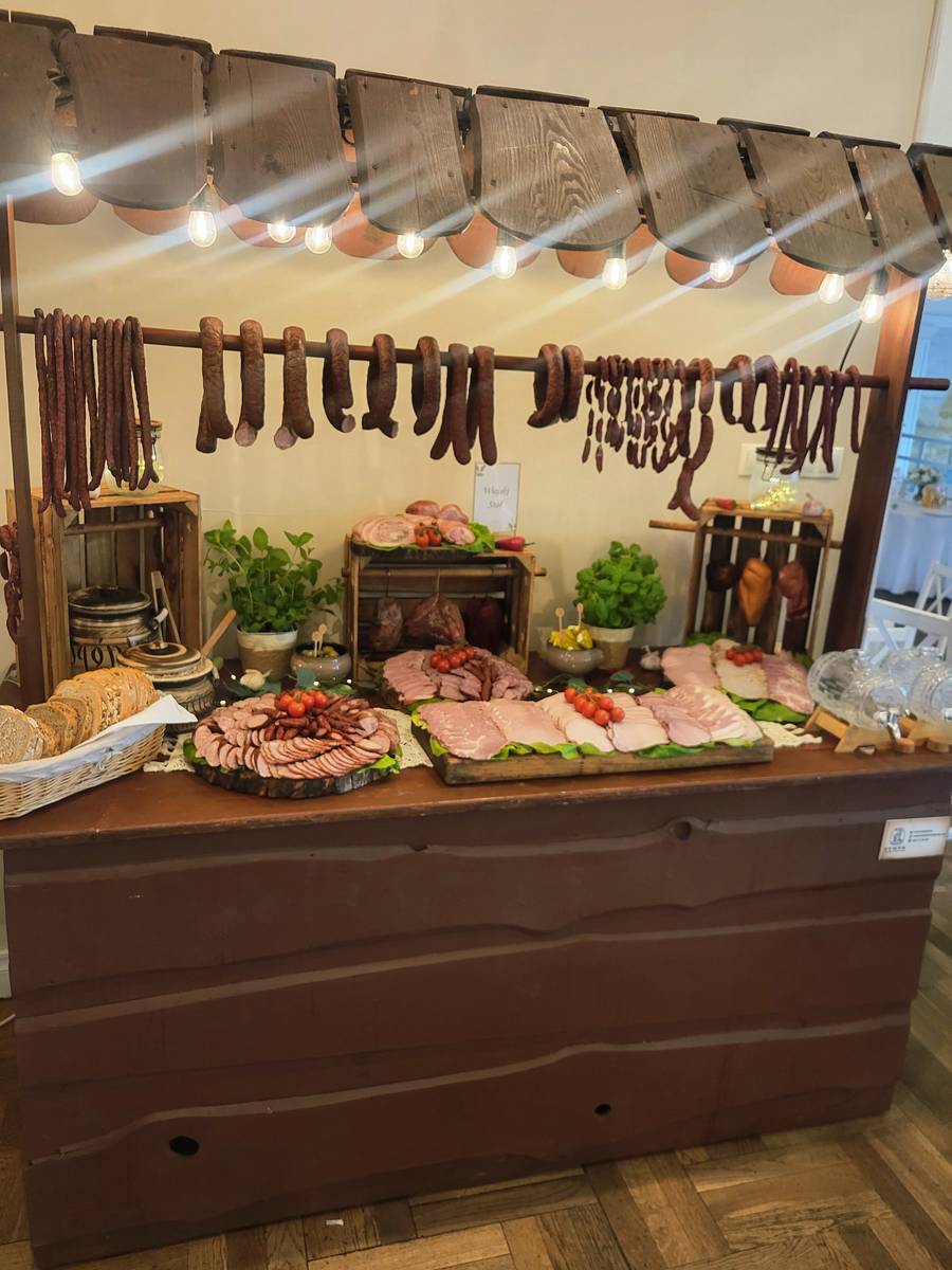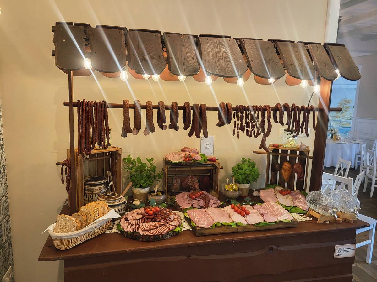 Stół wiejski od Wędzarnia Dymek na weselu Sylwii i Wojtka – Hotel Wodnik