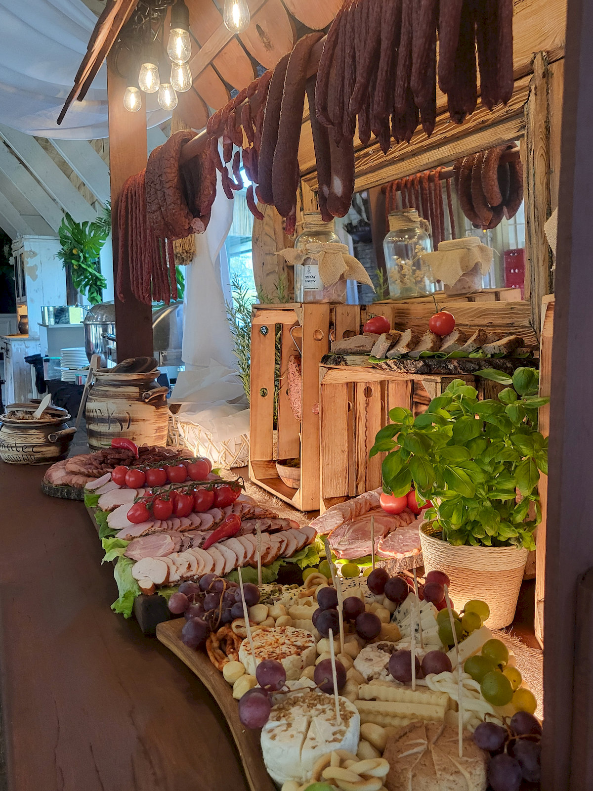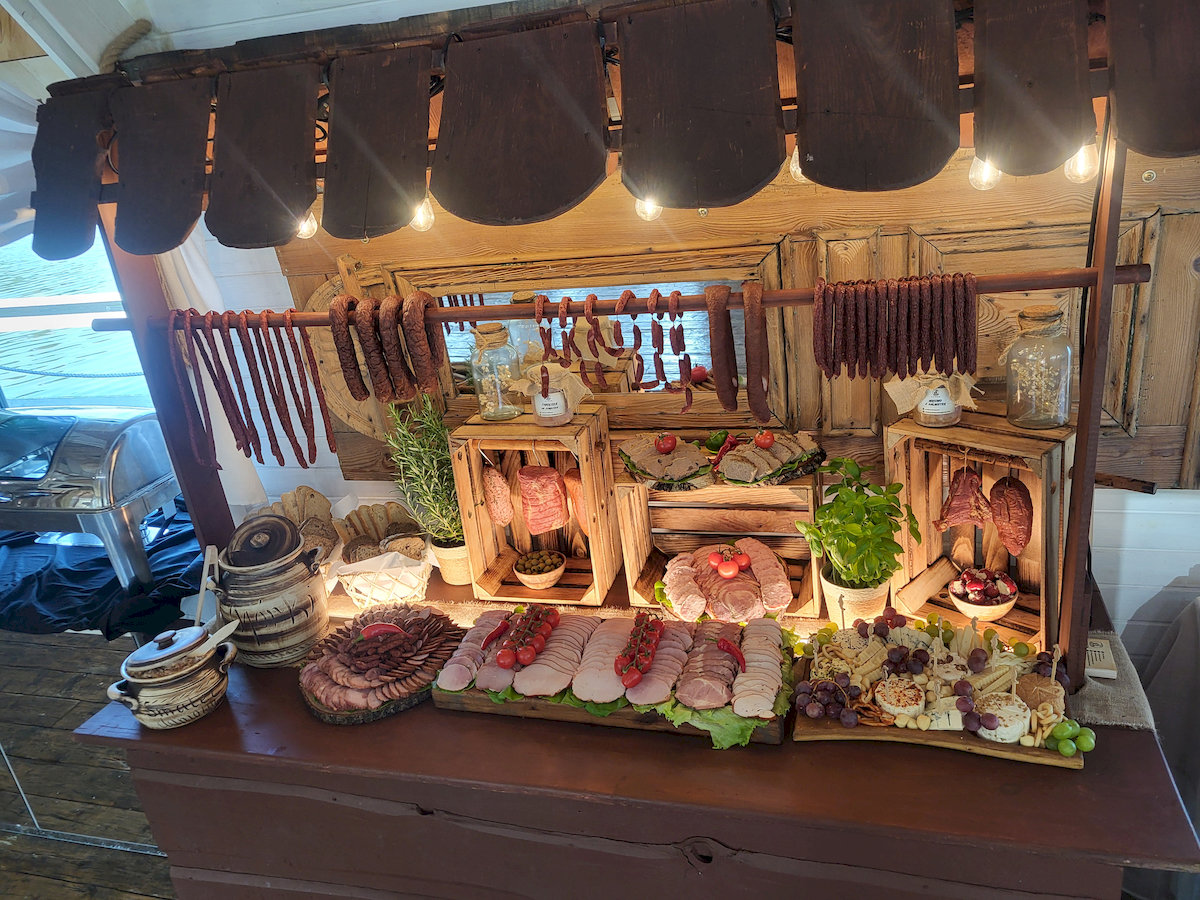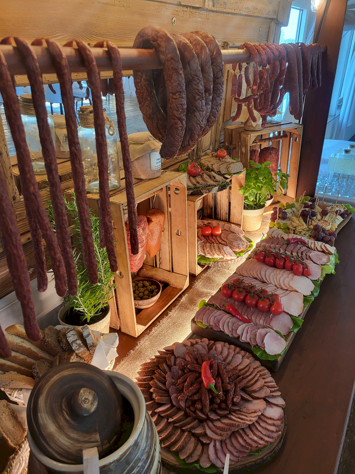 Na zaproszenie Alicji i Mateusza przygotowaliśmy pełen smaków i tradycyjnych aromatów stół wiejski, który pojawił się na ich wyjątkowym przyjęciu weselnym w urokliwej Tawernie Kapitańskiej w Ścinawie. Ręcznie wędzone wędliny, domowe pasztety, smalec, sery oraz sezonowe dodatki tworzyły prawdziwą ucztę – zarówno dla podniebienia, jak i dla oka. Stół został zaaranżowany w stylu rustykalnym, idealnie wpisując się w żeglarski klimat sali i rodzinny charakter przyjęcia. Goście chętnie wracali po dokładki, a stół wiejski stał się jednym z najbardziej obleganych miejsc wieczoru.