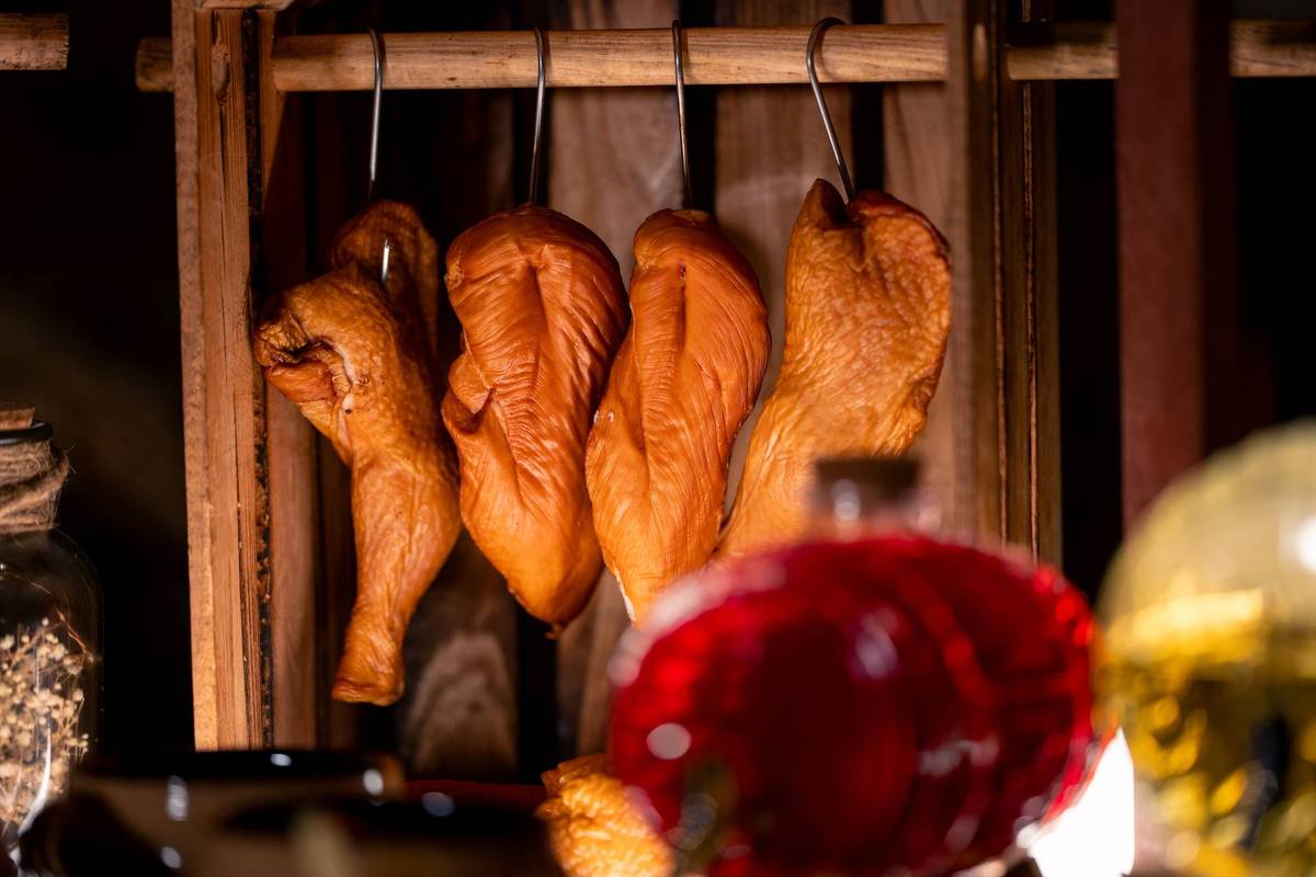 - Drób – bez antybiotyków, delikatnie przyprawiany, pieczony lub wędzony. Świetnie sprawdzi się jako przekąska lub element wiejskiego stołu.
